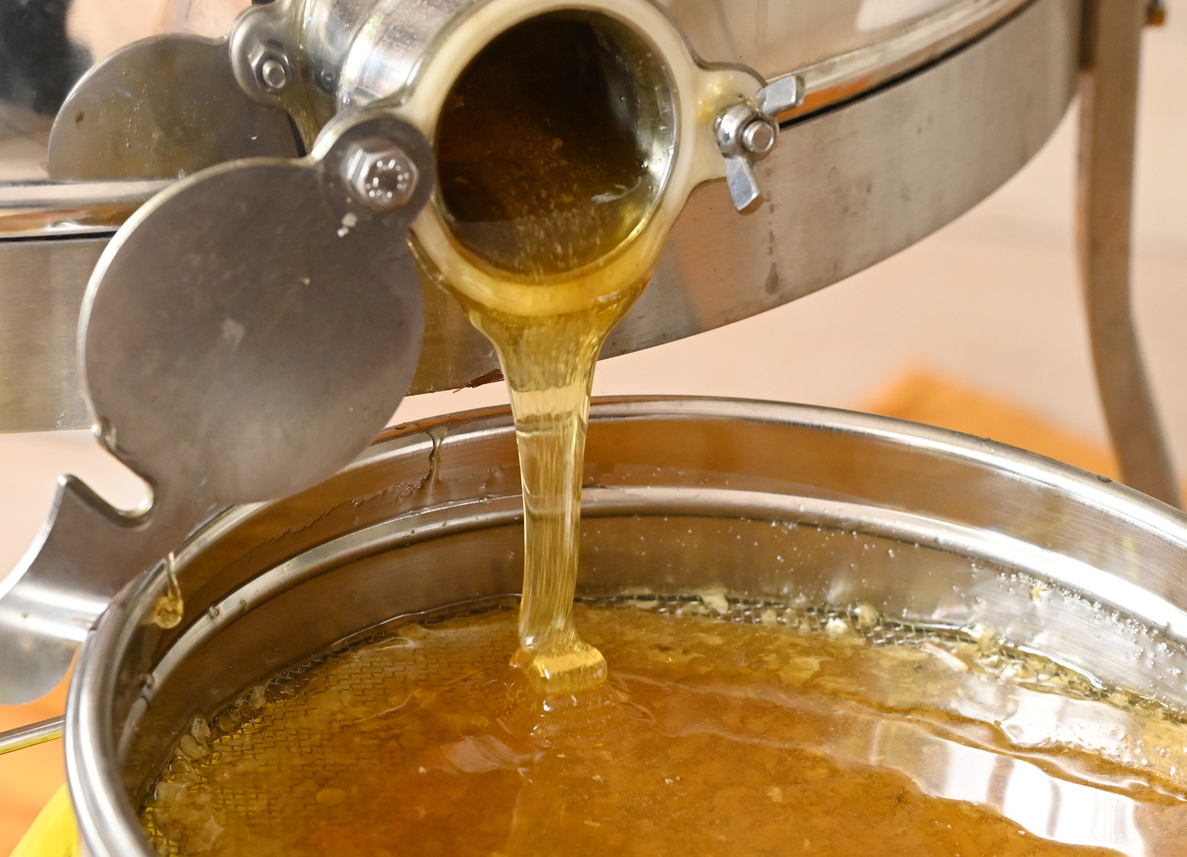 Siebung, Klärung und Lagerung des Honigs in Edelstahlbehältern